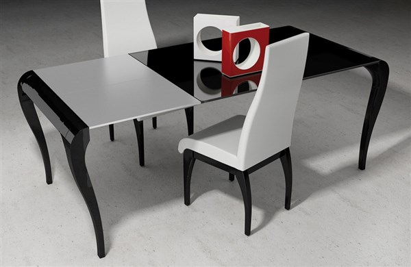 Otro ejemplo de mesa ampliable que combina con acierto formas clásicas pero con un toque de actualidad que las hacen aptas para cualquier ambiente.